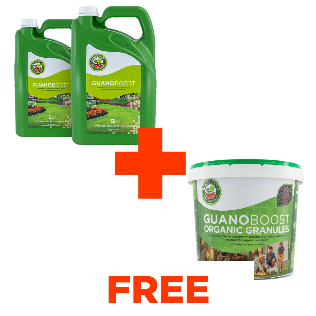 GuanoBoost is a complete garden nutrition solution that works for lawns, trees, shrubs, veggies and indoor plants. You only have to use GuanoBoost once a month throughout the year for amazingly healthy green lawns, plants and trees.